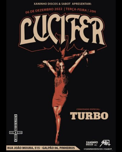 Depois de noite memorável, com ingressos esgotados em São Paulo, no sábado (03), a banda Lucifer marcou uma data extra para esta terça (06), com ingressos limitados no Iglesia Laborratxeria (R. João Moura, 515, Galpão 06, Pinheiros). A casa abre às 20h, e a abertura ficará por conta da banda Turbo.