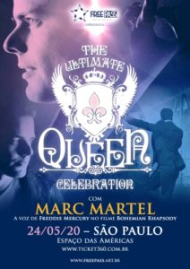 A Free Pass Entretenimento confirma a vinda para Porto Alegre, Rio de Janeiro e São Paulo, nos dias 20, 22 e 24 maio de 2020, respectivamente, do The Ultimate Queen Celebration, um tributo arrebatador ao grupo, comandado pela voz e carisma de Marc Martel, que levou Celine Dion às lágrimas durante a performance de ‘Somebody to love’, no programa canadense En direct de l’Universe.