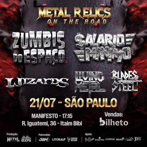 A Metal Relics tem o orgulho em anunciar a primeira edição do ‘Metal Relics on the Road’, que acontecerá no dia 21 de julho de 2024 (domingo), no Manifesto (Rua Iguatemi 36 – Itaim Bibi – São Paulo/SP), a partir das 17h.