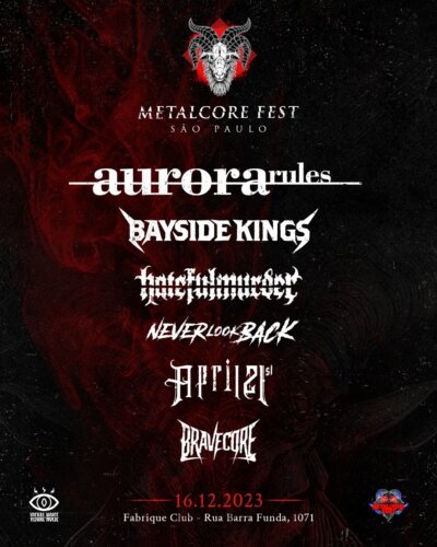 O Metalcore Fest chega no mês de dezembro com uma grande novidade para fechar 2023 com chave de ouro. Serão realizadas a 16ª e 17ª edições no mesmo final de semana, nas cidades de São Paulo e Belo Horizonte. Com um lineup formado por bandas que ganham cada vez mais destaque na música pesada nacional, o Metalcore Fest promete dois dias de muita sonzeira nas capitais paulista e mineira, nos dias 16 e 17, respectivamente. A edição de São Paulo terá show de seis bandas, como a Aurora Rules, Bayside Kings, Hatefulmurder, Never Look Back, April 21st, Bravecore e será realizado no Fabrique Club (Rua Barra Funda, nº 1071, Barra Funda). Já a edição de Belo Horizonte, terá sete bandas. São elas a John Wayne, Aurora Rules, Hatefulmurder, Never Look Back, April 21st, Bravecore e Sempta. O evento será realizado no Mister Rock Bar (Avenida Teresa Cristina 295, Prado). Aurora Rules, fundada há 15 anos em Goiânia-GO, é uma das bandas que movimenta a cena cultural e artística do país em seu gênero. Passeando pelo metal e hardcore, sempre buscando autenticidade. A banda possui atualmente três álbuns gravados. São eles “A Sombra do Presente”, “Ideal de Nós” e “Adentre o Labirinto”. Formada em 2009, a John Wayne é uma banda de Metalcore com composições em Português, considerada uma das principais e mais influentes do gênero do Brasil. Possui em sua discografia um EP, três álbuns, diversos singles e videoclipes lançados. Foi atração do Palco Sunset do Rock in Rio em 2015 e já se apresentou em importantes festivais do país, como o Goiânia Noise (2015), Rock na Praça (2016), Hell in Rio (2016), Abril Pro Rock (2017), Araraquara Rock (2023) e Rockfun Fest (2023). Atualmente a John Wayne vem trabalhando seu mais recente álbum, o “Purgatório”, e dois novos singles/videoclipes, “Semblantes” e “Reconectar”, lançados no primeiro semestre de 2023. A banda santista Bayside Kings, com mais de 10 anos de estrada, leva o nome do hardcore para além da palavra, conquistando notoriedade rapidamente após iniciar o trabalho em cima e embaixo dos palcos, impactando não só a comunidade do hardcore, mas também outras que permeiam e dialogam diretamente com seus ideais. Seu último trabalho, o single ‘Entre a Guerra e a Paz’ -o segundo single do EP Dualidade, o terceiro registro da série #liveparatodos -, lançado pela Repetente Records. Banda carioca Hatefulmurder tem mais de 10 anos de estrada, 3 álbuns, 2 EP’s lançados, 2 turnês sul-americanas e 4 turnês brasileiras. Em 2023 a banda lançou os singles ‘Psywar’ e ‘Eye For An Eye’, que fazem parte do novo disco da banda, ainda a ser lançado. Além do Brasil, a banda conquistou o público de países como Argentina, Peru, Bolívia, Colômbia, Equador e Chile, com fúria no palco e sangue nos olhos, como gostam de chamar. A banda brasiliense Never Look Back, formada em 2017, traz um instrumental agressivo, permitindo a discussão social que vai desde a importância da individualidade até os problemas da geração atual. Com influência de bandas como The Ghost Inside, Obey The Brave e Stick To Your Guns, a banda já realizou 4 turnês internacionais. A banda mineira April 21st, fundada no final de 2016, na capital Belo Horizonte, tem suas raízes no metalcore clássico do início dos anos 2000, focando em melodia, velocidade e vocais agressivos. Entre seus singles estão “In Your Destiny”,”In Whose Name?”,”Resilience”, “Coldest July” e “We Are the Difference”. A banda tem contrato assinado com a gravadora Norte Americana Eclipse Records, onde lançou o EP “Courage Is Born From Fear”. A Bravecore é uma banda paulista do gênero metalcore criada em novembro de 2018, com letras em português e inglês, que relatam temas diversos como; motivacional, autoanálise e protesto ao contexto político mundial. Em 2021 foi gravado o primeiro trabalho da banda, o EP “Devastação”.Em 2023 foi lançada a faixa “Entre quatro paredes”, seu mais novo lançamento. A também mineira Sempta, originária da cena musical de Belo Horizonte, é uma banda de metalcore fundada em 2014. Mergulhando profundamente nas raízes do gênero, o grupo traz em sua sonoridade a influência marcante de bandas renomadas como As I Lay Dying, Miss May I e Architects. Após uma pausa de quase dez anos, a banda fez o tão esperado anúncio de seu retorno em 2023. Acompanhe as novidades do fest em www.instagram.com/metalcore_fest. O Metalcore FestO Metalcore Fest, idealizado por Leandro Chechter em 2018, apresenta sua 16ª edição, marcando um marco significativo em sua trajetória. Este evento, reconhecido por sua consistência ao longo de 15 edições anteriores, agora expande-se para a sua edição dupla, tornando-se a maior já realizada. “Nesta ocasião, o Metalcore Fest reunirá os mais proeminentes artistas nacionais do gênero, destacando-se por sua relevância musical, reconhecimento consolidado, visibilidade regional e nacional, além de uma sólida base de fãs. As casas de espetáculos selecionadas são referências locais, proporcionando um momento muito especial para o coletivo do evento e para o público”, comenta Leandro. Além da venda de ingressos via Sympla, o evento incorpora a modalidade de ingresso solidário pela primeira vez, direcionando os alimentos arrecadados para instituições beneficentes (São Paulo – Comunidade Terapêutica Filhos Da Luz / Belo Horizonte – a ser definida). SERVIÇO 16º Metalcore Fest – São Paulo 17º Metalcore Fest – Belo Horizonte |