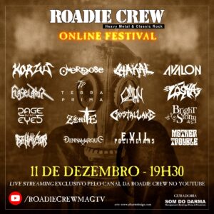A revista Roadie Crew, em parceria com a produtora Som do Darma, apresentam na sexta-feira, dia 11 de Dezembro, às 19h30, a nona edição do “Roadie Crew – Online Festival”.