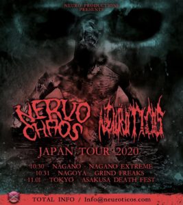 O NervoChaos acaba de agendar uma mini tour de 3 datas pelo Japão, no fim de Outubro. Os shows serão ao lado da banda Neuróticos, que é formada por dois brasileiros e dois japoneses. Confira as datas: