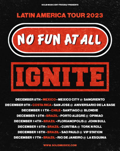 “Solid Music Entertainment orgulhosamente apresenta:No Fun At All e Ignite juntos em uma extensa turnê pela América Latina em Dezembro! 🔥