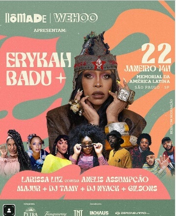 Ingressos: https://www.ticket360.com.br/ingressos/26140/ingressos-para-erykah-badu-nomade-e-wehoo-apresentam