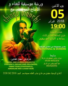 Esquentando os motores para a primeira turnê pelo Oriente da Noturnall, o vocalista Thiago Bianchi realiza workshop inédito na cidade do Cairo, no Egito, nesta segunda-feira dia 5 de fevereiro de 2018. O músico irá falar neste workshop sobre técnica vocal, music business e o seu trabalho como produtor ao lado de grandes bandas como Angra, Shaman, Karma, entre outras. Além disso, o vocalista se apresentará ao vivo cantando alguns clássicos de sua carreira e do Metal mundial.