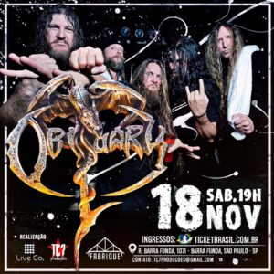 A banda é considerada como um dos maiores nomes do Death Metal, e retornam ao Brasil, para divulgar seu novo álbum, o auto intitulado, “Obituary”, seu décimo álbum de estúdio.