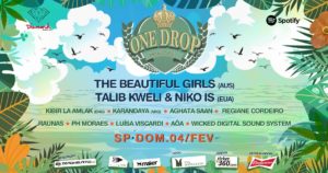 É verão e a 4ª edição do One Drop já tem data marcada em São Paulo. No dia 04 de fevereiro (domingo) o festival de alma surfista traz onze atrações que prometem esquentar ainda mais a capital paulista. Diferentemente das três edições anteriores – que trouxeram artistas diretamente ligados ao universo praiano – o One Drop 2018 traz um headliner do hip hop: o nova-iorquinho Talib Kweli que traz Nico IS como convidado em sua turnê. Talib (que é parceiro de Mos Def e já foi elogiado numa letra de Jay-Z) chega com seu novo álbum Radio Silence. E o line up segue com:
