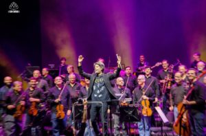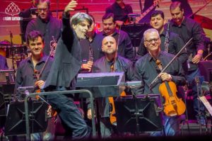 Sem lugares marcados, quem entrou cedo para evitar perrengue tinha como opções tirar foto com o mascote oficial do estádio ou observar o entorno. No aguardo, curiosas estórias se desenrolavam, como a de um atencioso marido que comprou três sacos de pipoca, pensando na esposa e no filho que tinham ido ao banheiro, e foi surpreendido com o retorno dos dois, mais modestos (ou menos famintos?), com outro saco em mãos, tendo a mesma idéia. Sorte de quem estava ao lado, gentilmente agraciado com uma doação. Pontualmente às 21:00, a orquestra composta por trinta e um músicos surgiu para executar os arranjos assinados por Alexandre Caldi, sob regência de Felipe Prazeres, responsável pelas saudações: “Boa noite, galera! Boa noite a todo mundo que está aqui. A gente está muito, mas muito feliz em voltar ao Allianz Parque, onde estivemos ano passado tocando Pink Floyd. Essa orquestra é doida e toca de tudo. Queria agradecer demais o carinho e a recepção que este lugar teve com a orquestra, agradecer demais à nossa mantenedora, a Petrobrás, com esta orquestra há 32 anos, por conta disso também, desse apoio e esse carinho. E hoje, com um concerto dedicado ao Queen e à trilha sonora do Bohemian Rhapsody e tenho certeza que vocês vão curtir demais. Podem bater palmas porque o Queen merece! A gente queria tocar a trilha toda aqui, tocar tudo, mas não dá. O tempo não dá, então a gente vai tocar a trilha para vocês e espero que vocês curtam muito”.
