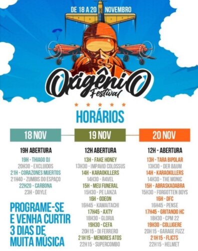Vans Apresenta: Oxigênio Festival, um dos mais queridos e concorridos eventos da música independente de São Paulo, acontece já nos próximos dias 18, 19 e 20 de novembro no Hangar do Aeroclube Campo de Marte. O evento terá dois palcos ao ar livre para receber mais de 30 artistas, entre nomes nacionais e dois internacionais: Doyle (Misfits) e Helmet.