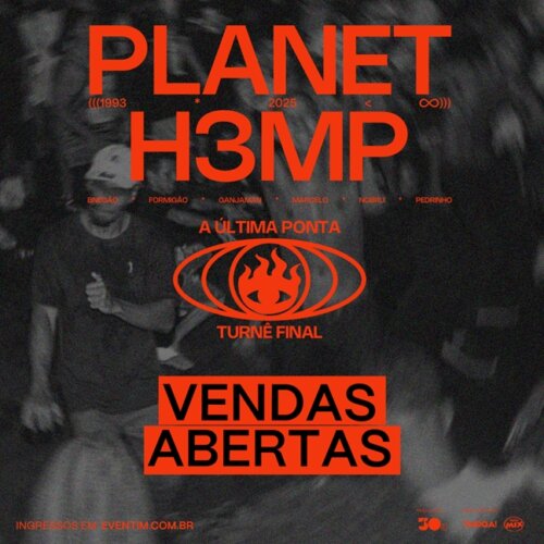 “O Planet Hemp vai acabar e precisava ser assim: com alto astral, entre amigos. Não é pra ficar de luto, vai ser uma comemoração de nossa história”. É dessa maneira que Marcelo D2, um dos fundadores do Planet Hemp, define a energia que os fãs podem esperar da turnê final do grupo, A Última Ponta. Com apresentações agendadas em Salvador, dia 13 de setembro, na Concha Acústica; em Recife, dia 20 de setembro, no Classic Hall; em Curitiba, dia 3 de outubro, na Live Curitiba; em Porto Alegre, dia 4 de outubro, na KTO Arena; em Florianópolis, dia 12 de outubro, no P12; em Goiânia, dia 17 de outubro, na Goiânia Arena; em Brasília, dia 18 de outubro, na Arena BRB; em Belo Horizonte, dia 31 de outubro, no BeFly Hall; no Rio de Janeiro, no dia 8 de novembro, na Farmasi Arena; e em São Paulo, no dia 15 de novembro, no Allianz Parque, a banda preparou um repertório extenso e inédito, além de contar com a participação especial de artistas que fizeram parte da trajetória do Planet. A Última Ponta é uma realização da 30e, maior companhia brasileira de entretenimento ao vivo, e a venda de ingressos nas 10 capitais começa a partir de meio-dia, no site da Eventim (acesse aqui), com exceção de Salvador, que terá entradas disponíveis via Sympla.