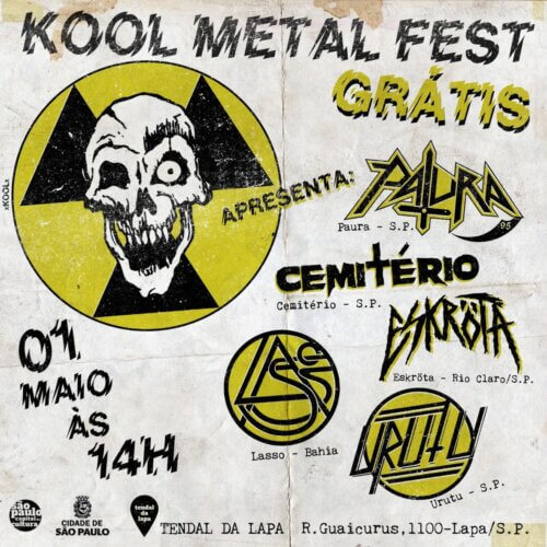 Paura, Cemitério, Lasso, Eskröta e Urutu são as atrações de peso deste Pré-Kool Metal no Tendal da Lapa, um amplo e seguro aparelho cultural de São Paulo. A organização é conjunta entre Loja 255, Agência Sobcontrole e Cospe Fogo Gravações. Paura é uma instituição do hardcore paulista, aliás, nacional! O show no Tendal da Lapa será o primeiro após dois anos sem pisar em palcos devido à pandemia. A banda promete fúria e vigor, como sempre. Tem também show do Cemitério, habitue do Kool Metal. Possivelmente a maior revelação do death metal brasileiro nos últimos anos, munido de amplo repertório de filmes trash e riffs assassinos, o Cemitério aparece para nos levar diretamente a Florida dos anos 80. Unindo o thrash metal no melhor estilo anos 80 com um tiquinho de punk, o power-trio Eskröta já deixou marcas indeléveis no metal brasileiro com seu primeiro disco Cenas Brutais. Agora a banda divulga o EP T3rror, já um sucesso de críticas e aclamado pelo público. Lasso é a revelação do punk nacional prestes a embarcar para sua primeira tour europeia. onde tocará com Discharge, The Toy Dolls, Violator, entre outras bandas. Vai rolar ainda o Urutu, a personificação do metal punk paulista, que lança seu novo compacto no Tendal da Lapa. Para assistir aos shows é preciso apresentar comprovante de duas doses da vacina contra a Covid-19. |