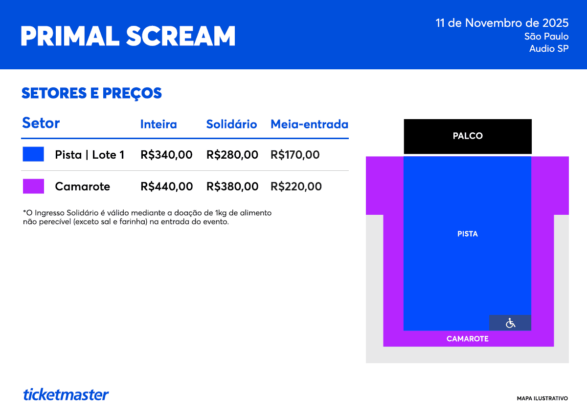 Ingressos: https://www.ticketmaster.com.br/event/primal-scream-sao-paulo a partir de 05/08 às 10h00.