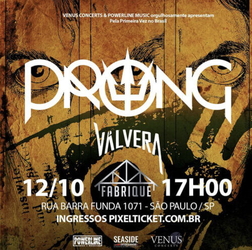 Prong é uma banda histórica da música pesada mundial. A banda foi criada em 1986 numa Nova Iorque (EUA) em pólvora com a proliferação do metal e do hardcore. Desde então, são 12 álbuns de uma carreira sólida e muito respeitada pela crítica especializada. Demorou, mas enfim é a vez da América Latina, com show único no Brasil: dia 12 de outubro no Fabrique Club, em São Paulo.