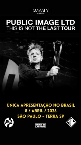 O Pil (Public Image Ltd.) anunciou um show no Brasil durante a sua turnê “This is Not the Last Tour”. A apresentação acontece dia 8 de abril de 2026 no Terra SP, em São Paulo. Ingressos já estão à venda através do site Fastix.