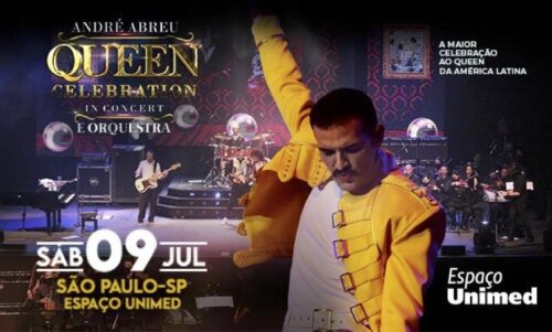 Serviço – Queen Celebration e Orquestra | Espaço UnimedShow: Queen Celebration e Orquestra | Espaço UnimedData: 9 de julho 2022 (sábado)Abertura da casa: 20hInício do show: 22hClassificação etária: 14 anosAcesso para deficientes: simCapacidade da casa para este evento: 3.264Ingressos: Setor Platinum: R$ 280,00 (inteira) e R$ 140,00 (meia) | Setor Azul Premium: R$ 220,00 (inteira) e R$ 110,00 (meia) | Setor Azul: R$ 180,00 (inteira) e R$ 90,00 (meia) | Setor A, B, C e D: R$ 140,00 (inteira ) e R$ 70,00 (meia) | Setor E, F, G e H: R$ 120,00 (inteira) e R$ 60,00 (meia) | Setor I, J e K: R$ 120,00 (inteira) e R$ 60,00 (meia) | PCD:R$ 60,00 | Camarote A: R$ 220,00 (inteira e por pessoa) | Camarote B: R$ 180,00 (inteira e por pessoa)Compras de ingressos: Nas bilheterias do Espaço Unimed (de segunda a sábado das 10h às 19h – sem taxa de conveniência ) ou Online pelo site Ticket 360 (Ticket360 Queen Celebration)Formas de Pagamento: Dinheiro, Cartões de Crédito e Débito, Visa, Visa Electron, MasterCard, Diners Club, Redeshop. Cheques não são aceitos.Objetos proibidos: Câmera fotográfica profissional ou semi profissional (câmeras grandes com zoom externo ou que trocam de lente), filmadoras de vídeo, gravadores de áudio, canetas laser, qualquer tipo de tripé, pau de selfie, camisas de time, correntes e cinturões, garrafas plásticas, bebidas alcóolicas, substâncias tóxicas, fogos de artifício, inflamáveis em geral, objetos que possam causar ferimentos, armas de fogo, armas brancas, copos de vidro e vidros em geral, frutas inteiras, latas de alumínio, guarda-chuva, jornais, revistas, bandeiras e faixas, capacetes de motos e similares.PROTOCOLO DE SEGURANÇAPara garantir um evento seguro a todos e minimizar os riscos de transmissão da Covid-19, seguimos os protocolos exigidos pelo Governo do Estado de SP e com isso será obrigatório apresentar no ato da entrada para acesso ao evento, além de seu ingresso e documento original (RG ou CNH), o comprovante abaixo:● Carteirinha de vacinação com a 2º dose ou dose única, podendo ser física ou digital (Aplicativos “Conecte SUS”, “Poupatempo Digital” ou “E-Saúde SP”).● A casa dispõe de álcool em gel 70° em totens distribuídos em diversos pontos da casa.● Utilize a máscara de proteçãoEste protocolo poderá sofrer modificações conforme o momento epidemiológico no período do evento.