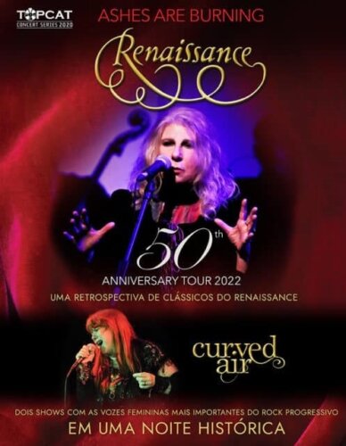 Após o período difícil pelo qual passamos durante a pandemia, e alguns adiamentos, finalmente Renaissance e Curved Air vão tocar no Brasil. Estas apresentações são uma mostra do otimismo da produtora Top Cat de que dias melhores virão.