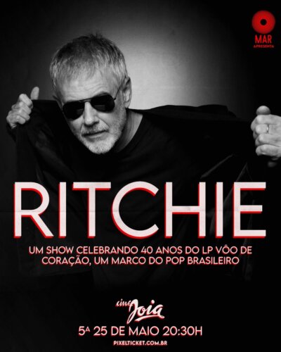 Lançado em junho de 1983, o disco trouxe pelo menos meia dúzia de hits de rádio, como o hit eterno, “Menina Veneno”, e outros sucessos como “Pelo interfone”, “A vida tem dessas coisas”, “Voo de Coração” e “Casanova”. “Voo de Coração” foi o LP mais vendido do Brasil naquele ano e permaneceu nas paradas nacionais por tanto tempo que, no fim do ano seguinte, ainda disputava a liderança com Roberto Carlos e “Thriller”, de Michael Jackson. No show, Ritchie, acompanhado de uma excelente banda, formada por músicos experientes como Hugo Hori (sax e flautas), Eron Guarnieri (teclados), Luis Capano (bateria), Renato Galozzi (guitarrista) e Igor Pimenta (contrabaixo), fará um apanhado de seus 40 anos de carreira e homenageará ídolos como Cat Stevens, Caetano Veloso, Peter Gabriel e Righteous Brothers. SERVIÇO R$ 110 (2º lote – meia entrada promocional, com doação de um quilo de alimento não perecível); R$ 220 (2º lote – inteira); R$ 200 (Camarote, 1º lote – meia entrada promocional, com doação de um quilo de alimento não perecível); R$ 400 (Camarote, 1º lote – inteira). ‘Voo do Coração’, um marco do pop brasileiro Por André Barcinski Em junho de 1983, um disco-voador pousou na música brasileira. Na época, ninguém entendeu direito o que era e nem de onde ele veio. Mas ele veio para ficar. “Voo de Coração”, LP de estreia de Ritchie, era uma anomalia no pop brazuca: a música radiofônica brasileira do início dos anos 80 era orgânica, feito de guitarras, não de sintetizadores. Era uma música solar, praiana e alegre – Blitz, Lulu, Gang 90 –, ao passo que a música de Ritchie era gélida e contida, o que lhe conferia uma atmosfera mais europeia e cool. Além disso, a figura de Ritchie contrastava com a de um popstar tropical: magérrimo, meio andrógino, com orelhas pontudas e dentes imperfeitos, usava um topete de gel, vestia jaquetas de couro e cantava com um forte sotaque estrangeiro. A canção tinha uma letra sexy e misteriosa, com um refrão absolutamente inesquecível e solo de saxofone, um must do pop da década de 1980. Se fosse gravada em inglês pelo Duran Duran, “Menina Veneno” teria sido um sucesso mundial. Ritchie não tinha na manga apenas essa música. O disco todo, “Voo de Coração”, era muito bom, com canções pegajosas, bem-produzidas e hits a granel, como “Pelo interfone”, “A vida tem dessas coisas”, “Voo de coração” e “Casanova”. Todos os sintetizadores foram gravados por Lauro Salazar, um brasileiro que morava em Munique e trabalhava com alguns dos músicos mais importantes da vanguarda alemã, como o baterista Curt Cress, conhecido por seu trabalho solo e por discos com Falco e Alphaville. Salazar também fez os arranjos do LP de Ritchie e, mais tarde, tocaria teclados no sucesso “Cheia de Charme”, de Guilherme Arantes. Desde “Secos & Molhados”, nenhum disco de estreia no Brasil fizera tanto sucesso quanto “Voo de Coração”. Ritchie saiu em uma turnê gigante – com 139 shows em sete meses – por Brasil, Paraguai e Peru, levando toda a aparelhagem de som e iluminação. A excursão passou por cidades que nunca tinham visto uma guitarra elétrica, quanto mais um sintetizador. E o professor de inglês, que ganhava a vida dando aulas para Gal Costa e outros, virou o maior popstar do Brasil. Ritche e a gênese de ‘Voo de Coração’ Quando estourou com “Menina veneno”, Richard David Court, o Ritchie, já era um veterano da cena musical no Brasil. O inglês desembarcara por aqui em 1972, para três meses de férias, mas nunca mais voltou à Inglaterra (sua matrícula no curso de literatura inglesa em Oxford ainda está aberta). Ritchie era um músico versátil: tocava vários instrumentos e havia cantado no coral da Sherborne School, tradicional escola britânica, onde foi colega do ator Jeremy Irons. Em Londres, conheceu Rita Lee, que o convidou para passar uma temporada com os Mutantes em São Paulo. Ao chegar, Ritchie logo se enturmou com os brasileiros. Montou uma banda, Scaladácida, que cantava em inglês, e foi chamado para o grupo de rock progressivo Vímana, no qual tocou com Lulu Santos e Lobão. A cena roqueira no Brasil era pequena e ortodoxa. O rock progressivo de Yes, Gentle Giant e Emerson, Lake & Palmer dominava as discussões. “As pessoas não acreditavam que havia um roqueiro inglês de verdade por aqui, que cantava em inglês, e eu virei um rockstar. Várias bandas tentavam cantar em inglês, mas falavam muito mal. Pensei: ‘Posso me dar bem por aqui!'” Quem tinha visto shows de Roxy Music, Mahavishnu Orchestra e Yes na Europa não se impressionava muito com as bandas brasileiras, exceto com os Mutantes. “Eles eram fora de série, estavam no mesmo nível técnico de qualquer banda estrangeira. Tinham uma força e uma originalidade impressionantes. Virei grande fã deles.” Ritchie morou por um tempo com Arnaldo e Sérgio e presenciou as brigas que culminariam na saída de Rita Lee do grupo. O Vímana acabou em 1977, sem estourar, e Ritchie foi dar aulas de inglês para sobreviver. Não via nenhuma perspectiva para quem gostava de rock e pop. Cansou de ouvir gravadoras dizerem que o rock jamais teria vez no Brasil, pois o povão não apreciava. Ritchie conseguiu um emprego na escola de inglês Berlitz e deu aulas particulares para Paulo Moura, Egberto Gismonti, Gal Costa e Liminha. Já tinha se conformado em abandonar a música. Em 1980, o ex-baterista do grupo inglês Traffic, Jim Capaldi, casado com uma brasileira, pretendia gravar um disco solo, “Let the Thunder Cry”, e convidou Ritchie para ajudá-lo com os arranjos vocais em Londres. Capaldi reuniu um supergrupo para o LP, incluindo o baterista Simon Kirke (Free, Bad Company), o saxofonista Mel Collins (King Crimson, Camel), o percussionista Rebop Kwaku Baah (Can, Traffic) e o baterista Andy Newmark, que havia trabalhado com Sly and the Family Stone, Cat Stevens e Pink