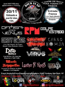 O Rock in SP desta primeira edição de 2019 vem a ser uma celebração ao Rock, Hard Rock e Heavy Metal paulistano, suas bandas e público. O evento promete unir diferentes gerações em torno da paixão pelo Rock e todas as suas vertentes, das 10:00 da manhã até as 22:00 horas com representantes de vários estilos ligados ao Rock and Roll, as bandas se apresentarão trazendo convidados (alguns ainda não divulgados) que irão deixar a festa ainda muito mais completa.