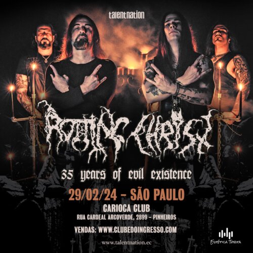 Celebrando 35 anos de carreira, a lendária banda grega Rotting Christ confirma vinda ao Brasil no início de 2024. A banda se apresenta em três cidades e aproveitará o retorno ao país para lançar sua biografia oficial.