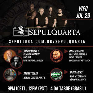 “Estamos muito felizes por termos duas lendas vivas conosco para um episódio do SepulQuarta. João Barone e Charles Gavin são dois dos bateristas de rock brasileiros mais influentes de todos os tempos. Ambos já gravaram os singles mais famosos da história do rock nacional. Estamos muito honrados em tê-los aqui conosco para falar sobre sua música e carreira. Além disso, eles também tocarão a música “Ratamahatta” do álbum “Roots” em outra performance histórica do Live Quarantine dessa SepulQuarta.“- comenta Casagrande.