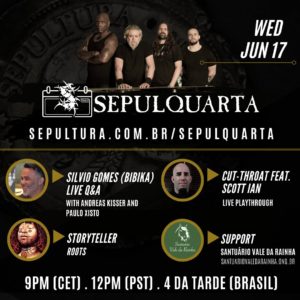 O Sepultura segue com suas lives todas as quartas-feiras para entreter os fãs do Brasil e do mundo. Para a próxima quarta-feira (17/06), a live de perguntas e respostas será com Silvio Gomes “Bibika”.