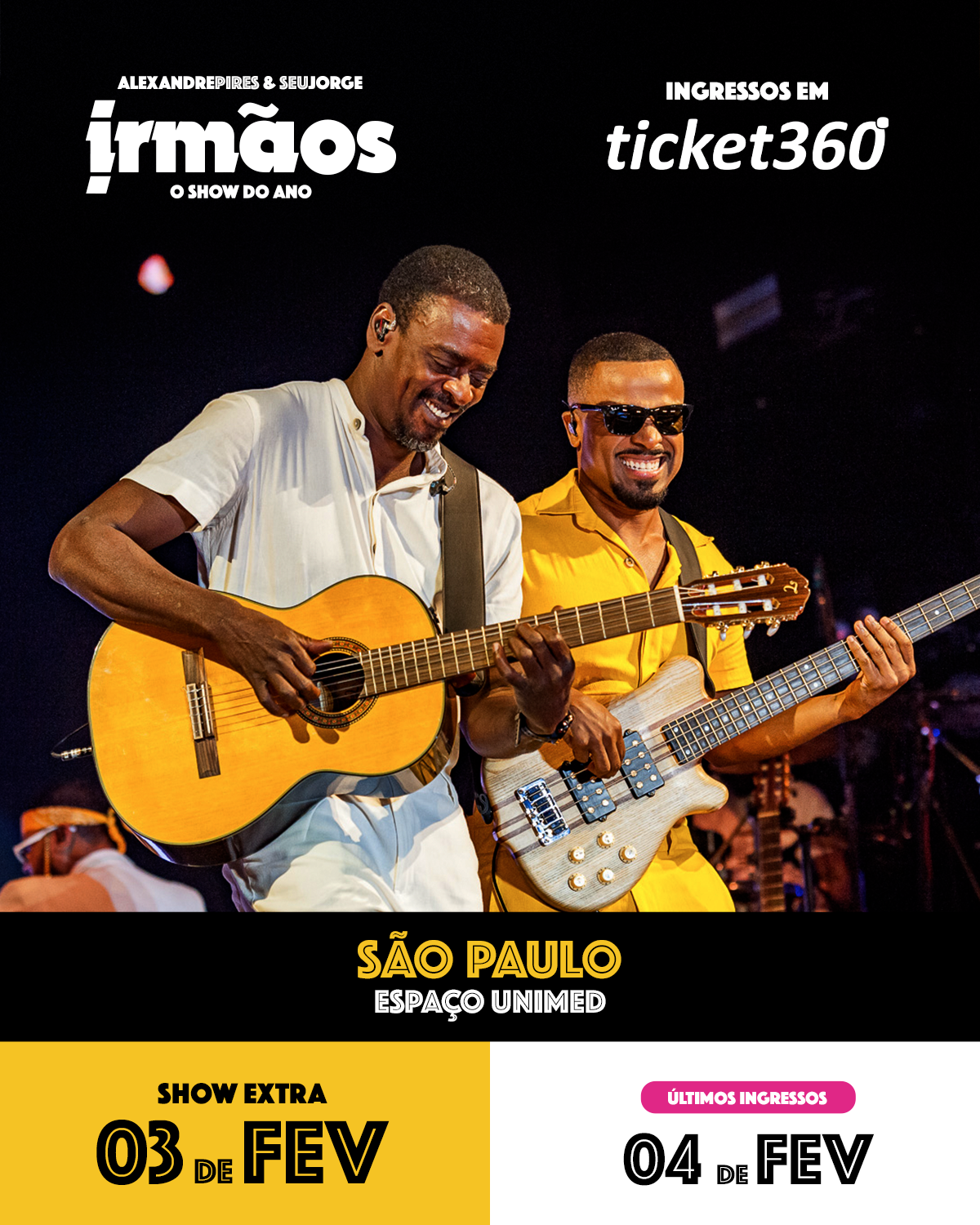 INGRESSO ONLINE: https://www.ticket360.com.br/evento/25848/ingressos-para-alexandre-pires-e-seu-jorge-irmaos-a-live-virou-tour