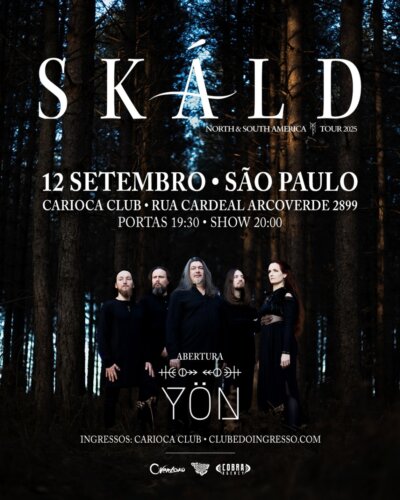A banda francesa Skáld, com instrumentos tradicionais e temas centrados na cultura escandinava e na mitologia nórdica, desembarca pela primeira vez no Brasil no dia 12 de setembro para um único show no país, que acontece em São Paulo/SP, no Carioca Club. A abertura fica com a banda nacional Yön, que toca folk nórdicos, e é composta apenas por mulheres. A realização é da Overload.