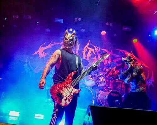O clima seguiu intenso com “Grizzly”, “Hell”, e a distópica “1984”, com a plateia completamente em sintonia com a proposta da banda. Cada breakdown parecia arrancar o chão do lugar, e os circle pits se formavam espontaneamente. Um dos momentos mais impactantes foi durante “I Killed a Man”, com sua letra provocativa e estrutura imprevisível. A banda não dá respiro – é uma experiência imersiva e física.