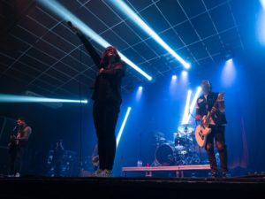 Meio de semana, leve garoa e noite fria de meio de inverno… Nada disso afastou os fãs mais fiéis do Sleeping With Sirens do Tropical Butantã, para a única data do quinteto de Orlando, Florida (hoje residentes de Grand Rapids, Michigan) no Brasil. Significa que a casa lotou? Nem metade… uma pena para quem curte o som dos caras e não compareceu. Já dentro do recinto, na última hora até o início do show, foi interessante testemunhar a recepção do jovem público (pouco acima dos 20 anos, na média, levando-se em conta as mães-parças acompanhando suas filhas) para algumas músicas da playlist no som ambiente, em especial para: Nightmare, do Avenged Sevenfold, e King For A Day e Bulletproof Love, ambas do Pierce The Veil, mas a primeira com participação do próprio Kellin Quinn, vocalista do Sleeping With Sirens, que voltava à cidade após passagens pela Clash Club e pelo Carioca Club, ambas em agosto de 2015 (para os mais curiosos, a última hora dessa playlist encontra-se disponível no final da resenha).