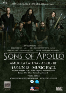 Com produção da Top Link Music, o supergrupo Sons of Apollo confirma turnê inédita na América Latina em abril de 2018 a segunda apresentação do grupo no Brasil foi confirmada para dia 15 de abril em Belo Horizonte no famoso Music Hall. Os ingressos serão vendidos pela Sympla e o link de vendas serão divulgados em breve pela produtora.