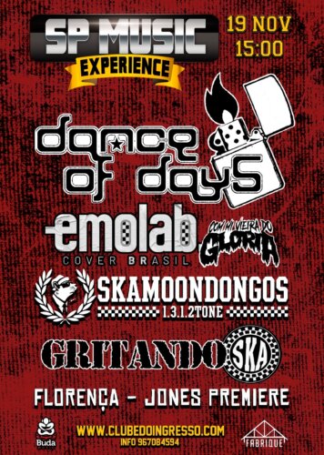 As atrações do SP MUSIC EXPERIENCE são: Dance of Days, Emolab Cover Brasil (com Mi Viera, do Glória), Skamoondongos, Gritando Ska, Florença e Jones Premiere. Ingressos continuam à venda: https://www.clubedoingresso.com/evento/spmusicexperience O Dance of Days, icônica banda de rock independente paulistana, que conquistou sua marca na história do rock nacional e influenciou múltiplas gerações, está prestes a lançar, em dezembro, seu nono álbum de estúdio e o show no SP Music Experience será, então, um esquenta! A banda, que estava com os pés no freio dos palcos até a conclusão das gravações do novo álbum (A Nova História), inaugura nesse show no Fabrique Club sua nova temporada de shows, encerrando a tour comemorativa de 25 anos da banda (iniciada em julho de 2022). Após essa temporada, o Dance of Days entra em turnê de divulgação do novo álbum. O Emolab é uma banda formada por cinco amigos que tocam o melhor do Emo Br. São hinos do estilo que marcaram décadas e ainda contagiam plateias. Neste show, o Emolab Cover Brasil terá a participação do carismático Mi Vieira, vocalista do Glória. A banda paulistana de ska Skamoondongos, fundada em novembro de 1994, trilhou o caminho do ska 2tone e da terceira onda do ritmo no Brasil, dividindo palco com diversas bandas e artistas de diferentes estilos – recentemente fez a abertura do lendário The Toy Dolls, em São Paulo. Alcançou sucesso nacional com a composição “Pobre Plebeu”, que foi executada em todo o país como top 10. Com o reconhecimento do público e do mercado, a banda foi apontada pela crítica, em 1995, como revelação nacional. Em 2014 a banda voltou à ativa para comemorar com os fãs os 20 anos de sua formação e não deixou mais os palcos para trás. Gritando Ska é uma banda paulistana idealizada pela vocalista Lê e traz como proposta versões em Ska da banda Gritando HC. A Gritando Ska possui cinco músicas para lançamento, programado ainda para 2023, como presença de um quarteto de peso nos metais, com os músicos da OBMJ e Samuca e a Selva como convidados. O repertório da banda vem recheado de clássicos e ainda conta com outras vertentes não só do punk, mas também de músicas brasileiras que marcaram época. A banda de rock alternativo do ABC paulista Florença começou suas atividades em 2014 e tem em sua essência a melancolia do emo, que se junta ao som progressivo, o djent, o hardcore e a musicalidade e ambiência dos anos 80. Cantor e compositor, Jones Premiere é um artista da cena rock paulistana desde 2015 – o primeiro disco com banda, em 2018, teve produção e direção de Rick Bonadio e Giu Daga. Em 2023, Jones Premiere lançou seu trabalho solo, com sonoridade única, letras autobiográficas e intimistas. SERVIÇO: SP MUSIC EXPERIENCE |