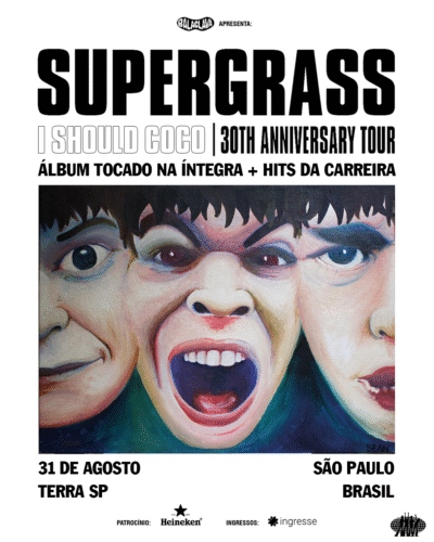 Três décadas depois de colocar o britpop na linha de frente do rock inglês com energia juvenil e refrões memoráveis, o Supergrass está de volta aos palcos — e com parada marcada no Brasil. O icônico trio de Oxford se apresenta no dia 31 de agosto, um domingo, no Terra SP, na zona sul de São Paulo, com ingressos já disponíveis via Ingresse, nos setores Pista e Mezanino.