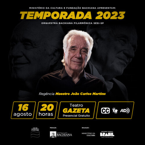 Dando continuidade a programação da Temporada de Concertos 2023, o maestro João Carlos Martins e a Bachiana Filarmônica SESI-SP, se apresentam no próximo dia 16, a partir das 20h, no Teatro Gazeta, com entrada gratuita.