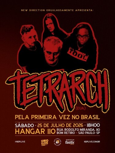 A banda norte-americana Tetrarch, sensação do metal moderno e elogiada pela Alternative Press como uma das 20 bandas do mundo que melhor definem o som do metal do passado e do presente, se apresenta pela primeira vez no Brasil no dia 25 de julho de 2026, em São Paulo/SP, com show único no Hangar 110. A realização é da New Direction em parceria com a Criollos Crew.