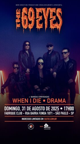 Últimos ingressos: https://fastix.com.br/events/the-69-eyes-em-sao-paulo Serão duas bandas brasileiras na abertura do evento: a paulistana de gothic rock When I Die e a carioca Drama, nome da vanguarda gótica/industrial do Brasil. O The 69 Eyes é reconhecido ao redor do globo pela mistura de hard rock, com referências de Mötley Crüe, Hanoi Rocks e The Stooges, e gothic rock do The Mission e Sisters of Mercy, uma junção perfeita de sonoridades sombrias e melancólicas, mas com o punch hard quase sempre à frente das composições. Os vocais graves e dramáticos de Jyrki 69 muitas vezes são comparados ao estilo de Peter Steele (Type O Negative) ou Andrew Eldritch (The Sisters of Mercy). Guitarras distorcidas e a cadência rock n’ roll também caracterizam a banda, além do uso constante da temática vampiresca nas letras, o que levaram os fãs a usarem o termo goth n’ roll. Atualmente a banda é Jyrki69 (vocal), Bazie (guitarra), Timo-Timo (guitarra), Archzie (baixo), Jussi 69 (bateria), formação que está junta praticamente desde o início das atividades em Helsinque. A The 69 Eyes começou a ganhar fama internacional já em meados da década de 1990, especialmente com o lançamento do disco Wasting The Dawn, lançado pela Roadrunner Records. O álbum contou com a ajuda e participação do também finlandês Ville Valo, do HIM. Desde então, o The 69 Eyes soltou álbuns emblemáticos e que atingiram rapidamente o topo das paradas, rendendo extensas turnês pela Europa, Estados Unidos, Ásia, Austrália e América do Sul. Em 2000, lançam Blessed Be, o primeiro disco de ouro da banda, cujo single Brandon Lee ficou incríveis 14 semanas no TOP 20 do canal alemão VIVA2. Já Angels, de 2007, atingiu a posição de número 1 de paradas de sucesso da Finlândia. O lançamento mais recente é Death of Darkness, de 2023, o 13º álbum de estúdio da banda. Entre as faixas do álbum, destaca-se o single “Drive”, em que o The 69 Eyes apresenta a inédita influência de rockabilly. A revista Distorted Sound destacou que “Drive” é um rock glamuroso e intenso, com “guitarras grandiosas e uma bateria extraordinária, proporcionando uma mudança de ritmo bem-vinda em comparação ao glam metal tradicional”. Além disso, a música “This Murder Takes Two” conta com a participação especial da artista Kat Von D. SERVIÇOThe 69 Eyes em São PauloData: 31 de agosto de 2025 Horário: 17h (abertura da casa) Local: Fabrique Club (Rua Barra Funda 1071, Barra Funda, SP) Ingresso em último lote: https://fastix.com.br/events/the-69-eyes-em-sao-paulo |