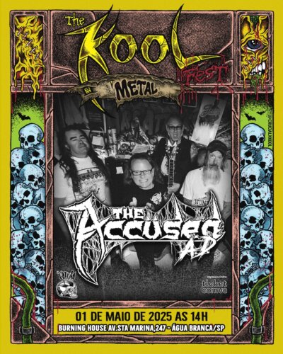 A banda norte-americana de crossover thrash, The Accüsed A.D., derivada da lendária The Accüsed, fará sua estreia nos palcos brasileiros em maio deste ano com um show imperdível em São Paulo, dia 1º de maio (feriado), na edição 2025 do Kool Metal Fest. O show será no Burning House, no bairro Água Branca.
