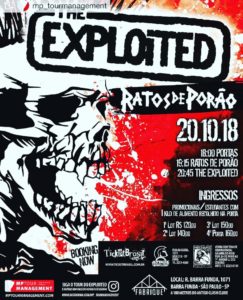 A lendária banda escocesa de Punk/Hardcore, The Exploited, retorna ao Brasil em Outubro, como parte de sua nova tour, Sul americana, “Don’t Forget The Chaos 2018”, que terá as seguintes datas: