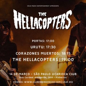The Hellacopters se apresenta em São Paulo neste sábado, 14, no Carioca Club. Com Urutu e Corazones Muertos abrindo o grande show, The Hellacopters sobe ao palco às 19h.