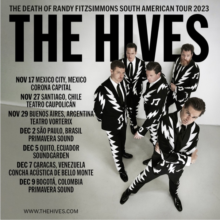 The Hives recentemente fechou uma turnê para Arctic Monkeys na Europa europeia. Eles retornarão à América do Norte com seu show “incrível e frenético” (Rolling Stone) para uma turnê que ESGOTOU em menos de 30 minutos. Eles anunciaram recentemente uma corrida latino-americana em novembro. The Hives será a primeira banda europeia a tocar na Venezuela em uma década. |