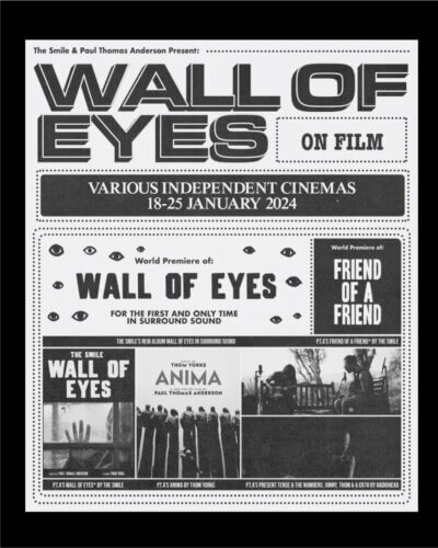 O vídeo de “Friend Of A Friend”, do diretor de cinema Paul Thomas Anderson, será lançado juntamente com a reprodução de um álbum com som surround de Wall Of Eyes em uma série de eventos únicos realizados em cinemas independentes entre 18 e 25 de janeiro.