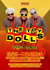 Formada na Inglaterra nos últimos instantes da década de 1970, em plena revolução do punk rock, The Toy Dolls é daquelas bandas icônicas que, ao passar dos anos, se revigora e se tornam ainda mais afinadas com a própria história. Neste caso, que história! O power trio, liderado pelo vocalista/guitarrista Michael “Olga” Algar está de volta ao Brasil em agosto para uma série de três shows – Curitiba (10/08), Goiânia (11/08) e São Paulo (12/08) – cujos reportórios terão único e exclusivamente clássicos. A realização é da Powerline em parceria com a Hellnoise Booking.