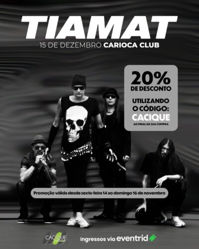 Para celebrar a contagem regressiva, a produtora Cacique Entertainment, responsável por todos os shows do Tiamat na América Latina, liberou um cupom de 20% de desconto válido por tempo limitado (de 14 a 16/11) na compra de ingressos. Para ter o desconto, utilize o código ‘Cacique’ ao final da compra: https://eventr.id/0034PmFS O benefício reforça a expectativa em torno do show, que promete revisitar clássicos de álbuns como Wildhoney e Clouds, além de faixas marcantes de outros álbuns da sólida carreira do Tiamat. A versatilidade sonora e evolução artística ao longo das décadas do Tiamat é inquestionável. A banda sueca, na ativa desde 1987, experimentou diversas facetas do metal e do rock e já na década de 1990 se tornou referência mundial da música soturna, sempre com os vocais graves e únicos de Johan Edlund. O show na capital paulista é o último de uma extensa turnê de 10 datas do Tiamat na América Latina, que começa no México e desce para Honduras, Chile e Argentina. Para este giro, o Tiamat promete repassar sua vitoriosa história na música, que carrega momentos marcantes dentro do black/death metal até sonoridades mais experimentais, além da fase de maior destaque e reconhecimento no gothic rock/metal. O Tiamat é tão importante na indústria musical que os renomados sites Loudwire e Metal Injection já colocaram os suecos como uma das bandas essenciais para entender a fusão entre o metal e o rock gótico dos anos 90 e 2000, classificando o álbum A Deeper Kind of Slumber (1997) como “influente e atemporal”. Da fase mais pesada, Wildhoney é um clássico. O álbum de 1994 mostra a habilidade do Tiamat em criar paisagens sonoras densas e etéreas. O uso de sintetizadores e passagens progressivas traz uma aura cinemática e emocionalmente poderosa. Já entre os materiais mais recentes, Amanethes, de 2008, lançado via Nuclear Blast, mostra a união de muito bom gosto entre o metal e o rock atmosférico com influência de Pink Floyd e Sisters of Mercy. Uma menção à parte para o vocalista Johan Edlund, um dos compositores mais visionários do metal europeu, autor de poéticas letras melancólicas e existenciais, que alinham o rock gótico com temas esotéricos e espirituais, usando até mesmo da ironia em muitas delas. A realização da turnê é da empresa mexicana Cacique Entertainment (@caciquemx). SERVIÇOTiamat em São PauloData: 15 de dezembro de 2025 Horário: 20h Local: Carioca Club (rua Cardeal Arcoverde, 2099 – Pinheiros, São Paulo/SP) Venda online: https://eventr.id/0034PmFS Valores: R$ 200,00 (Meia Entrada e Meia Solidária – 1º lote); R$ 400,00 (Inteira – 1º lote) |