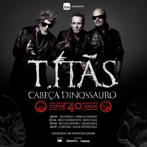 Em 2026, um dos álbuns mais icônicos e provocadores da música brasileira completa 40 anos. Cabeça Dinossauro, lançado pelos Titãs em 1986, transformou a banda e o próprio rock nacional ao romper padrões, desafiar o conservadorismo e traduzir, em som e fúria, o espírito de um país em transição. O Brasil tentava reaprender o significado de liberdade depois de duas décadas de censura e autoritarismo, e o álbum virou o retrato cru de uma geração inconformada. Quatro décadas depois, em um país novamente atravessado por polarização e intolerância, o grito de Cabeça Dinossauro volta a soar necessário e atual. É essa força de expressão — de resistir, de questionar e de pensar o presente — que os Titãs Branco Mello, Sérgio Britto e Tony Bellotto pretendem reacender com a turnê “Titãs – Cabeça Dinossauro 40 anos”, que tem estreia marcada para 28 de março de 2026, no Espaço Unimed, em São Paulo, em uma realização da 30e, maior companhia de entretenimento ao vivo do país, e apresentado pelo Itaú. A tour também tem passagem confirmada por: Belo Horizonte (25/04); Rio de Janeiro (09/05) e Curitiba (18/07). A pré-venda exclusiva para clientes do Itaú tem 15% de desconto no valor dos ingressos para compras realizadas com cartões de crédito do banco e começou no dia 16 de dezembro, às 10h; a venda geral começa hoje, 18 de dezembro, ao meio-dia, pelo site da Eventim (acesse aqui). Novas datas da tour serão anunciadas em breve.