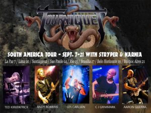 Após cerca de 25 anos, o lendário Tourniquet retornará ao Brasil no mês de setembro para uma série de shows numa turnê conjunta com as bandas Narnia e Stryper, porém existiam algumas dúvidas a cerca de qual seria a formação utilizada nos shows.Confirmando a suspeita de alguns, o Tourniquet no Brasil (e também nos demais shows já confirmados na Bolívia, Argentina, Chile e Peru) será formado de Ted Kirkpatrick na bateria e Aaron Guerra na guitarra e vocais, sendo eles acompanhados de Andy Robbins (Holy Soldiers) no baixo, CJ Grimmark (Narnia) na outra guitarra e Les Carlsen (Bloodgood) nos vocais principais. Essa formação foi utilizada quase por completo em uma apresentação na Holanda em 2018 (na ocasião um outro guitarrista estava presente no lugar de CJ) e será experimentada de vez em 2 shows marcados para o mês de julho na Suécia e Noruega.