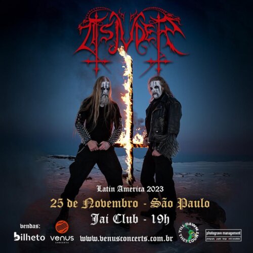 A turnê é uma realização da Vênus Concerts, em parceria da TDTC / Dynamo Prod. A banda está na ativa há 30 anos e foi formada na gélida Oslo, na Noruega. Com Nag (Jan-Erik Romøren, vocais e baixo) e Draugluin (Halvor Storrøsten, guitarra e vocais) desde os primórdios, o Tsjuder é representante do alto escalão da chamada ‘Segunda Onda do Black Metal Norueguês’ e ganhou notoriedade pela crueza extrema das composições, além de influências do thrash metal. Para a segunda vez nas Américas, o Tsjuder trará no set list algumas músicas do ainda inédito Helvegr, o sexto álbum da carreira, lançado em junho deste ano pelo gigante selo francês Season of Mist. Em uma das edições limitadas do novo álbum, o Tsjuder presta tributo ao Bathory, lenda do black metal, com a música “Scandinavian Black Metal Attack”. O nome Tsjuder foi escolhido de um filme norueguês chamado Pathfinder (Veiviseren). O Tsjuder (ou Chud) era uma tribo mítica da Finlândia do Norte. Os demais discos da carreira da banda norueguesa são Kill for Satan (2000), Demonic Possession (2002), Desert Northern Hell (2004), Legion Helvete (2011) e Antiliv (2015). Acompanhe o Tsjuder: instagram.com/officialtsjuder. SERVIÇO TSJUDER EM SÃO PAULO TSJUDER EM BRASÍLIA |