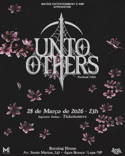 Rapidamente o Unto Others se tornou conhecido por suas apresentações impactantes e cheias de carisma. Ao longo de quase uma década de atividade, a banda já dividiu palco com grandes nomes do metal, como King Diamond, Arch Enemy, Carcass e Behemoth, além de ter excursionado pelos Estados Unidos e pela Europa. Strength, de 2021, o disco de estreia sob o nome Unto Others, traz Já Never, Neverland, de 2024, lançado pela gigante Century Media Records, é ainda mais coeso e acessível, com melodias cativantes, performances vocais marcantes e diversidade de estilos. O experiente site francês Album Rock descreve o álbum como uma evolução que realça melodias cativantes e arranjos refinados, com momentos em que a estética gótica alcança um equilíbrio perfeito com influências metálicas e rock clássico. SERVIÇOUnto Others em São PauloData: 28 de março de 2026 (sábado) Local: Burning House – Av. Santa Marina, 247 – Água Branca, São Paulo (ao lado da estação Água Branca da CPTM – Linha 7 Rubi) Abertura da casa: 23h Ingressos: ticket.com.vc/evento/unto-others-em-sao-paulo Cartaz: @crucialxkool |