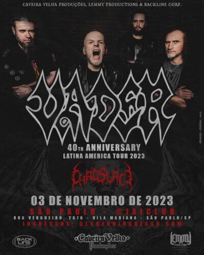 A banda polonesa Vader, referência do death metal mundial, retornará ao Brasil para celebrar seus 40 anos de atividades com um show especial em São Paulo, que será realizado no dia 3 de novembro (sexta-feira) na Jai Club. Os ingressos para o evento, que terá abertura a cargo do Chaoslace, estão à venda.