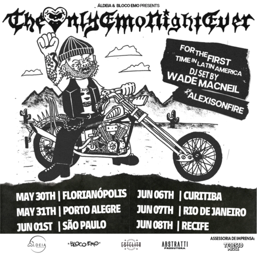 Guitarrista e principal backing vocal do Alexisonfire, uma das mais cultuadas bandas de post-hardcore da atualidade, o canadense Wade MacNeil traz pela primeira à América Latina o The Only Emo Night Ever, evento em que o músico discoteca um extenso set com muitos hinos emos e do pop punk de diversas eras. A turnê de 12 apresentações acontece entre maio e junho deste ano, em quatro países, sendo seis datas no Brasil.